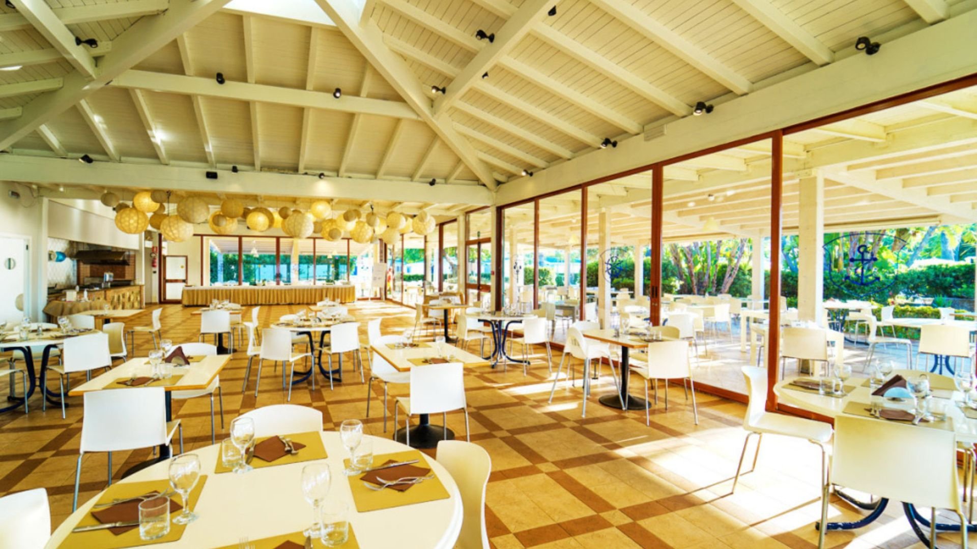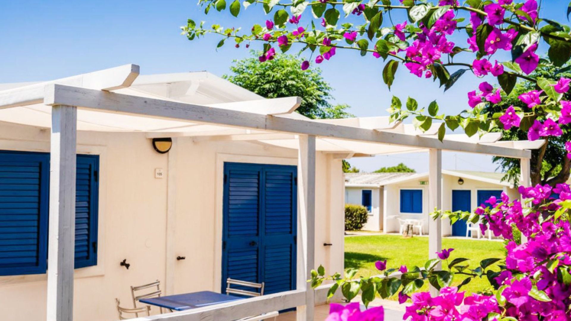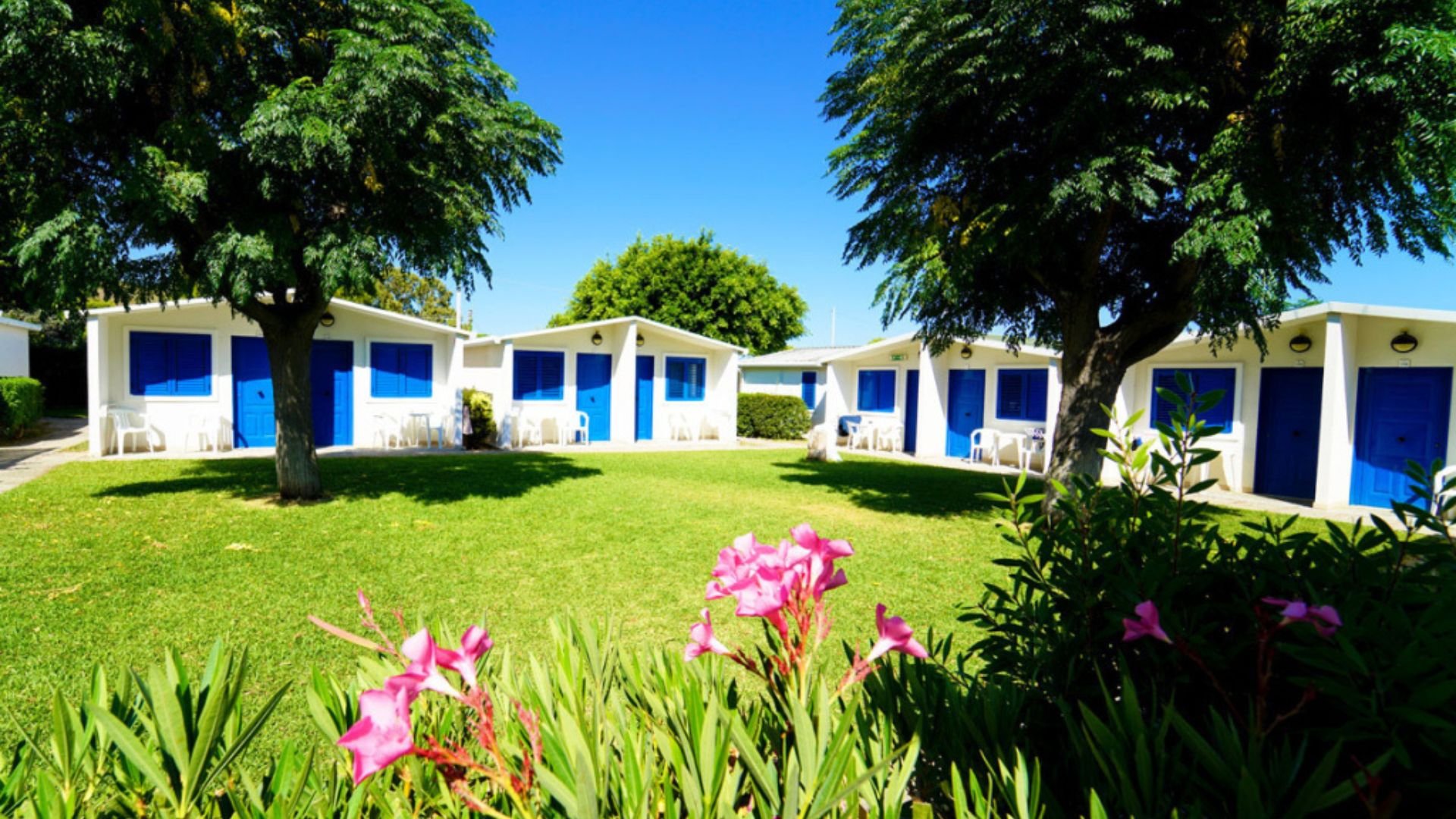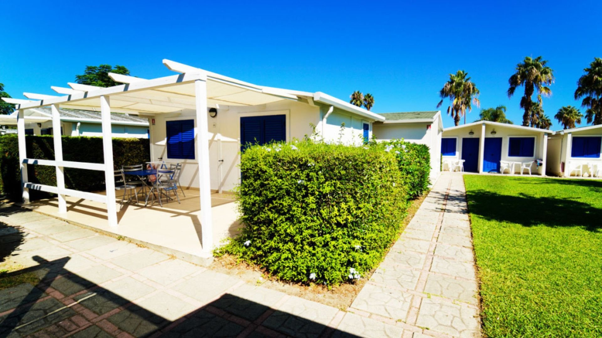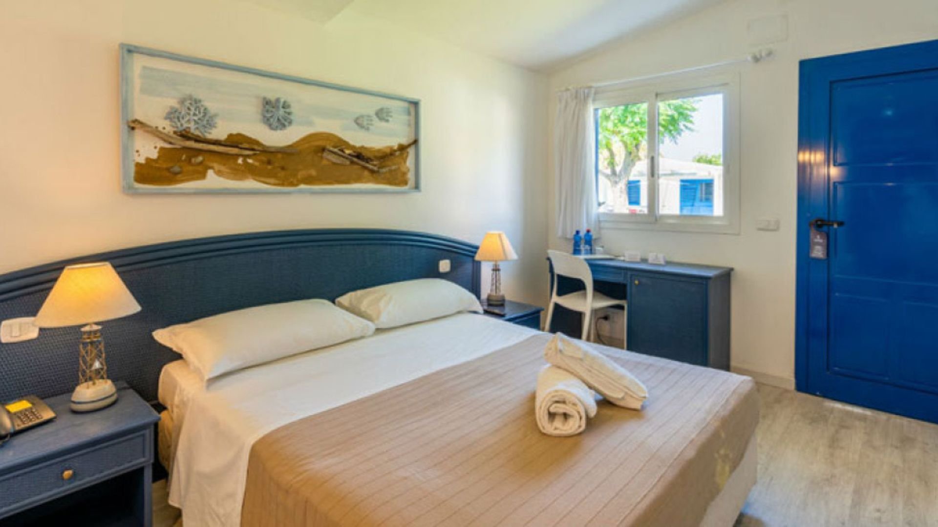 Il villaggio ha accesso diretto alla sua spiaggia privata e attrezzata, con sabbia e ciottoli sul bagnasciuga.